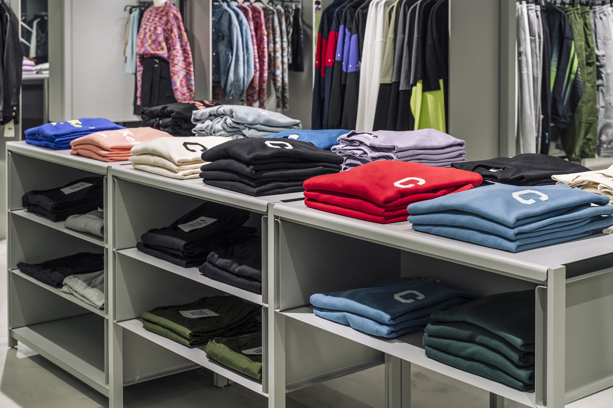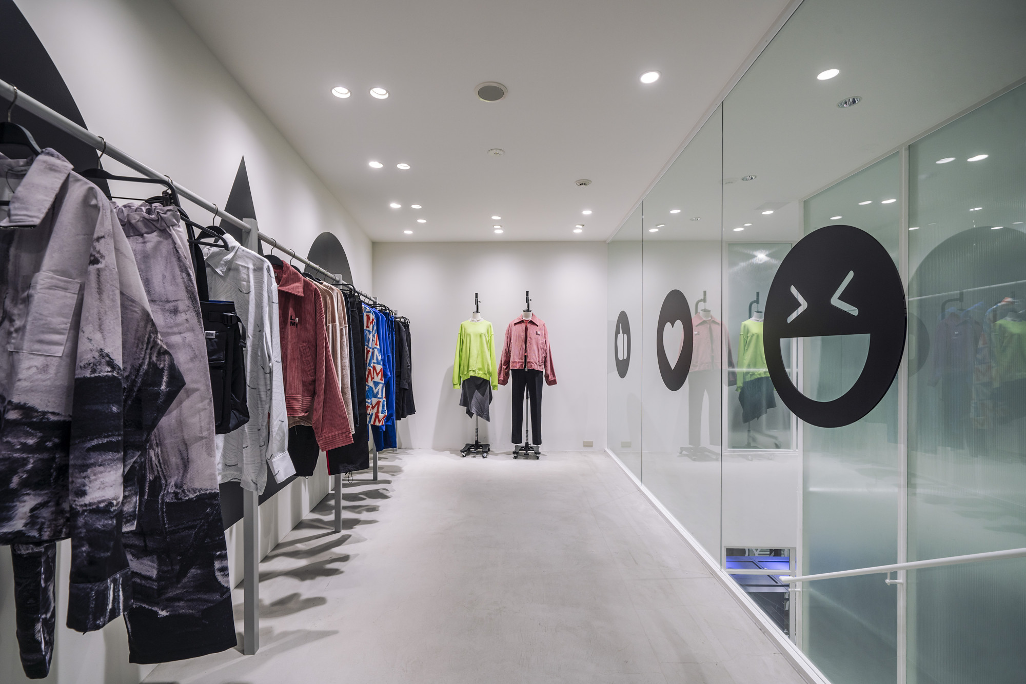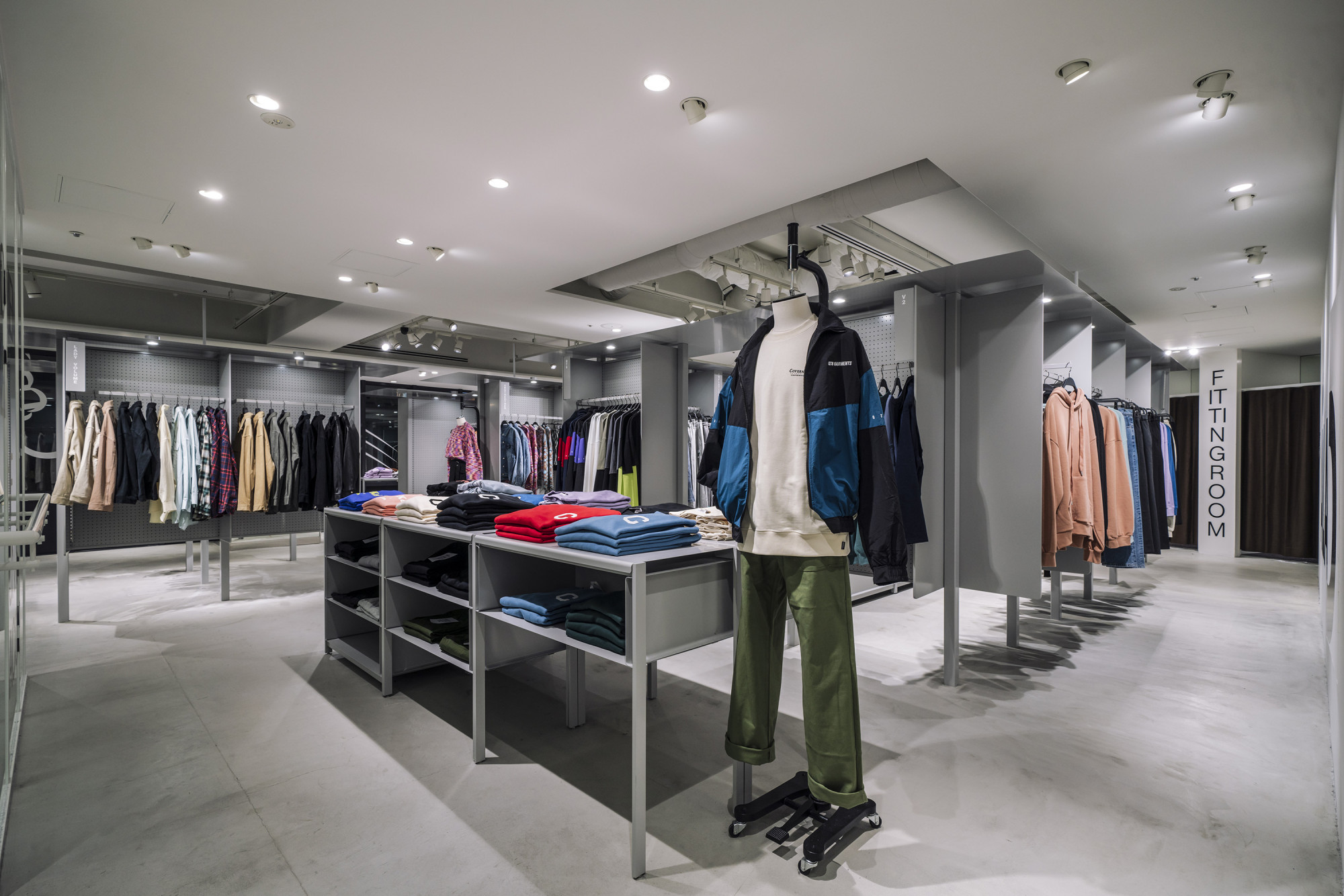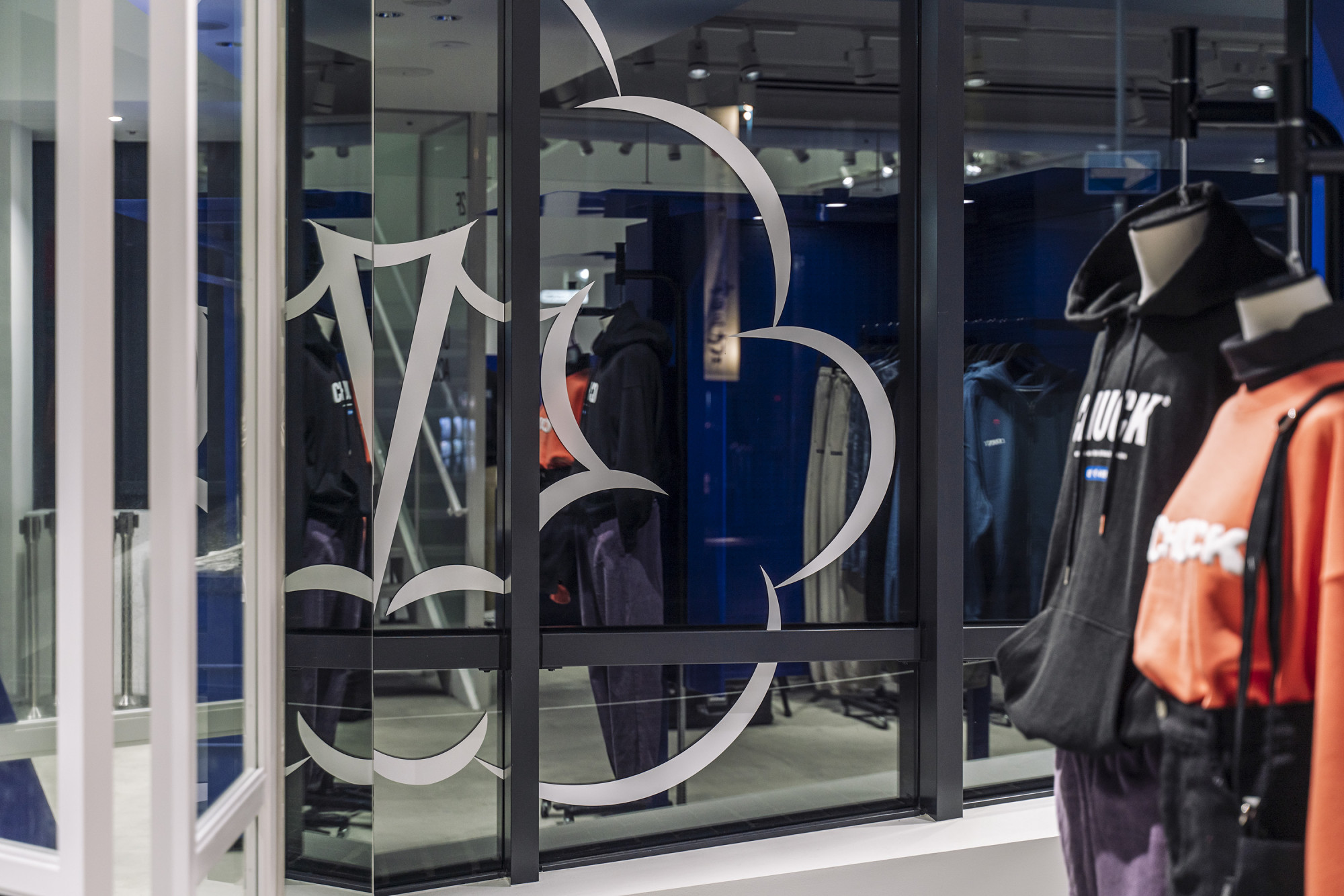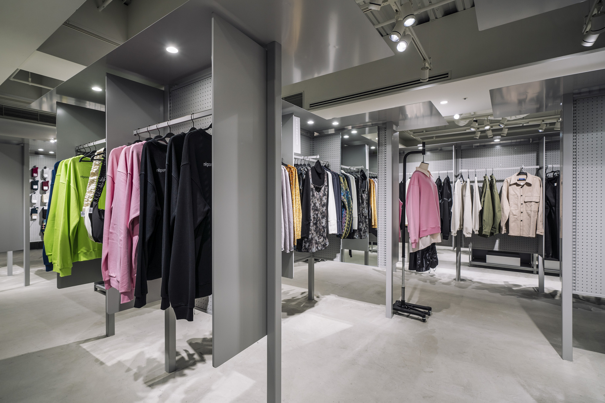 We designed the first branch of ÅLAND, a designer concept shop representing Korea, in Tokyo Shibuya. ÅLAND requested a unique design that sets it apart from typical stores, as it was opening its store one block behind the Shibuya scramble intersection. They specifically emphasized the need for a giant hanger for clothes, an enjoyable browsing experience, and an overwhelming atmosphere within the space. According to surveys conducted for the Japanese market, Japanese individuals enjoying trips to Korea appreciate the distinct atmosphere of Seoul's streets compared to those of Japan. They particularly admire the winding streets and the protruding eaves of Korean houses and villas converted into numerous Road Shops, which are street-side stores. This insight naturally led us to envision the protruding eaves of roofs and the outer walls of buildings. We combined these elements to create the space, curating narrow or wide pathways resembling alleyways as requested by ÅLAND. We designed the space using ÅLAND's key colors, vivid blue and bright shades of gray and white. All structures were designed to share specific sizes, enabling modular assembly and disassembly. This flexibility allows for rearranging the layout by assembling or disassembling furniture as needed to alter the flow of the space.