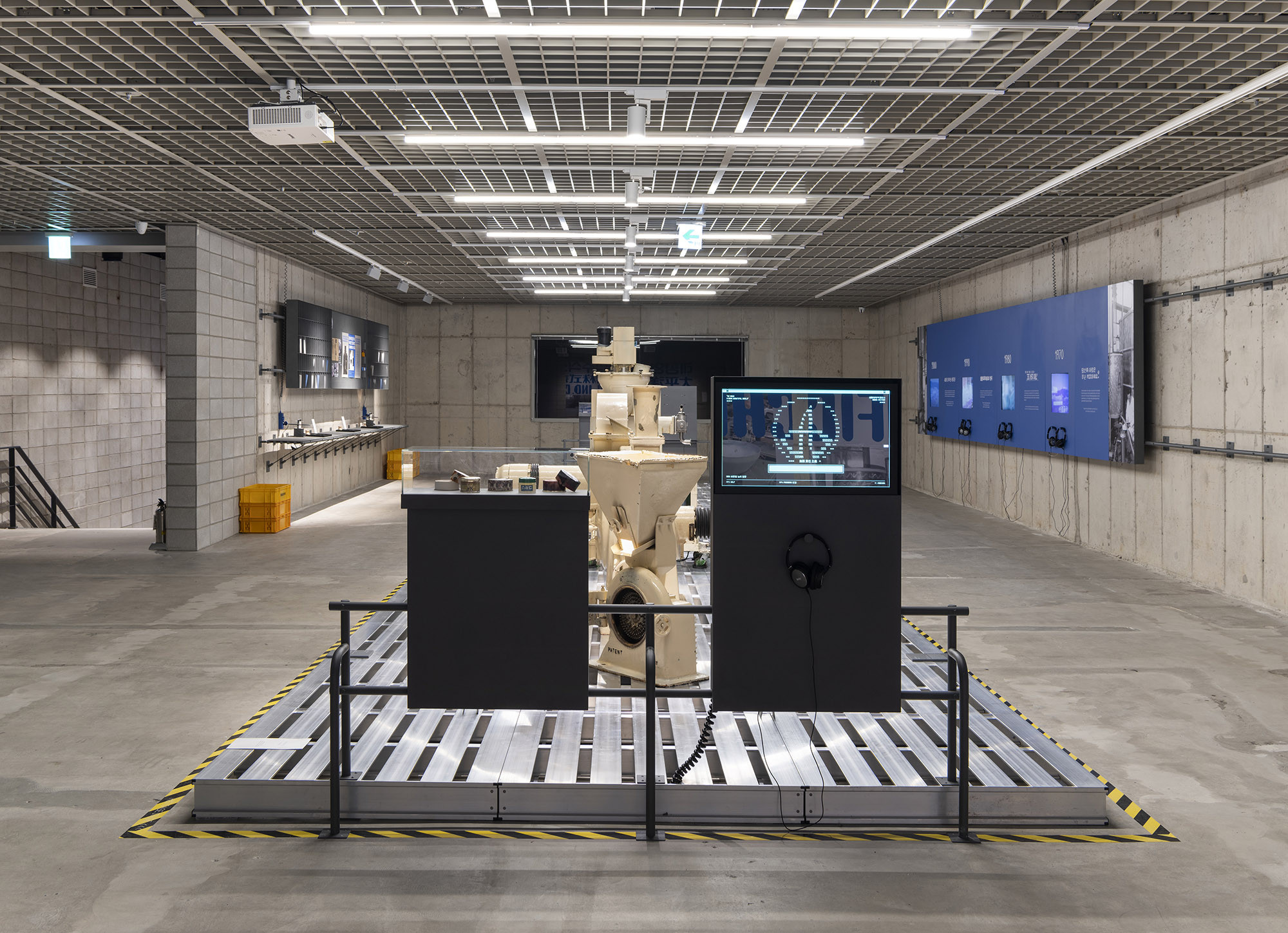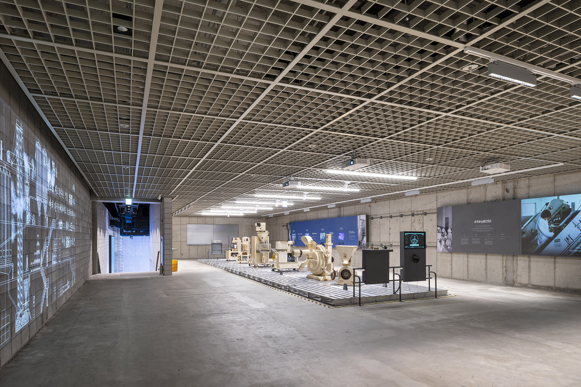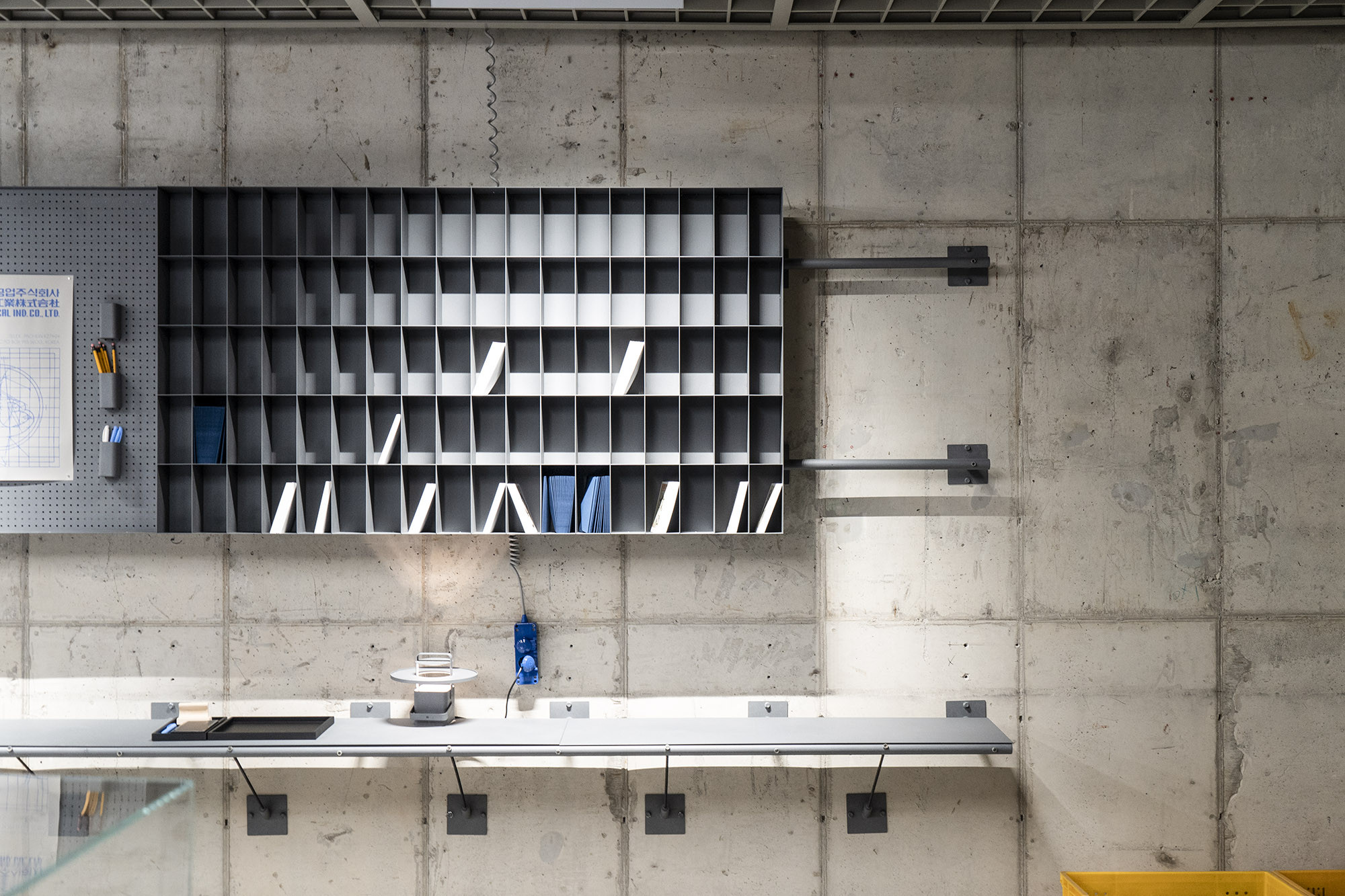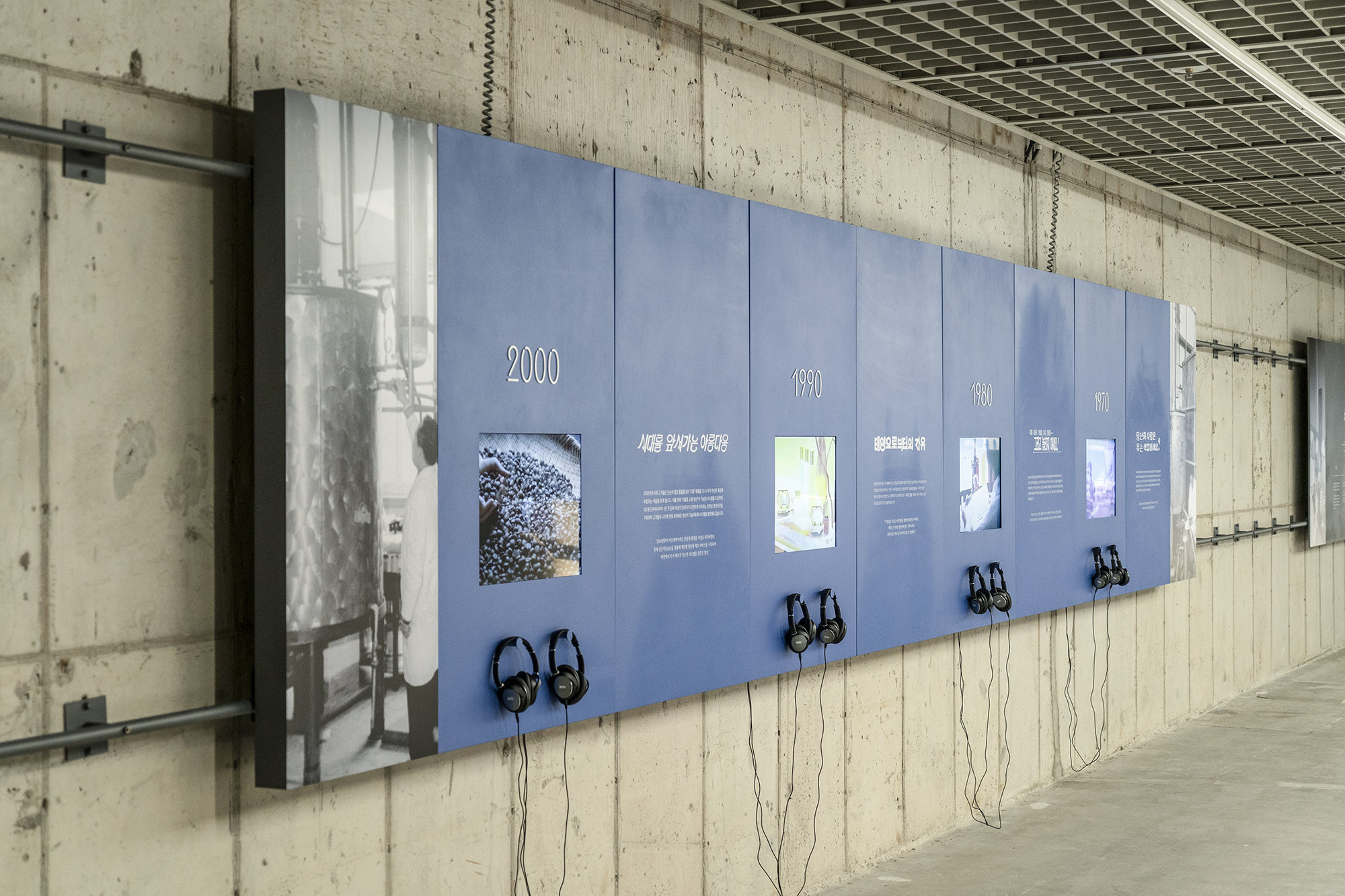 This project aims to transform the empty space within the Amore Pacific plant in Osan into an educational exhibition area. Given that it is located within a manufacturing plant, the space is designed to showcase Amore Pacific's manufacturing machinery and history. Materials are connected using bolts and nuts instead of welding, and structures are designed to share module sizes for easy reconfiguration when updating the exhibition contents. The manufacturing machine stand uses an aluminum pallet to withstand the weight of heavy machinery. The FACTORY ARCHIVE on the second floor showcases the history of Amore Pacific, while the FACTORY WALK on the third floor offers visitors an interactive experience of various manufacturing and production processes, including domestic and international production and logistics networks.