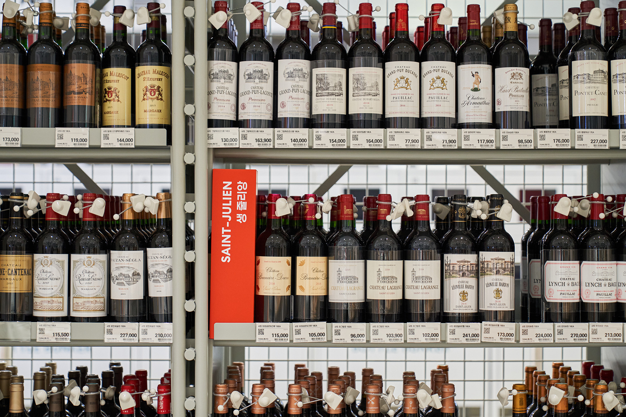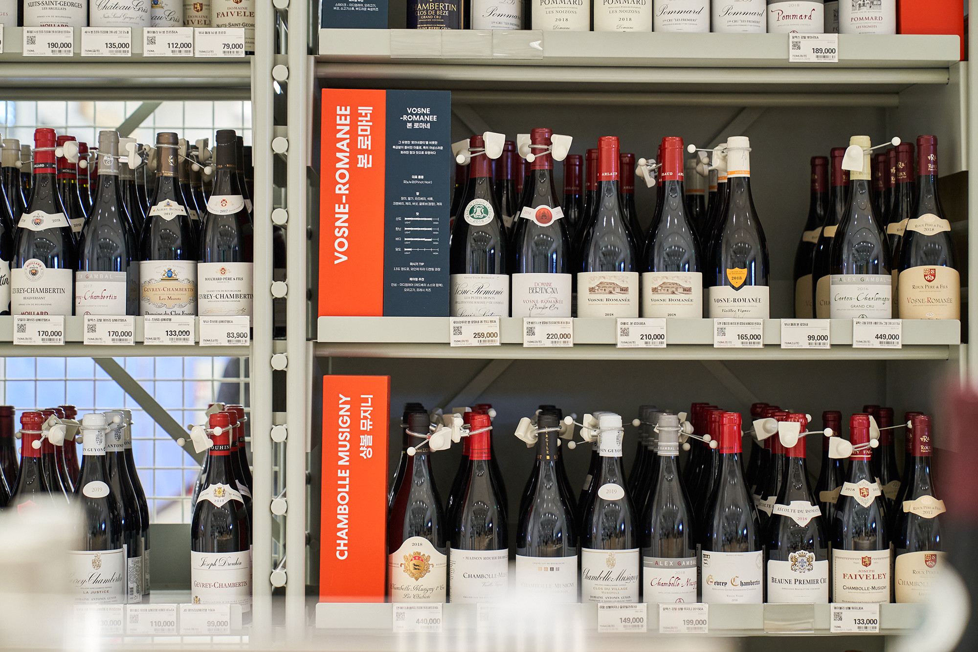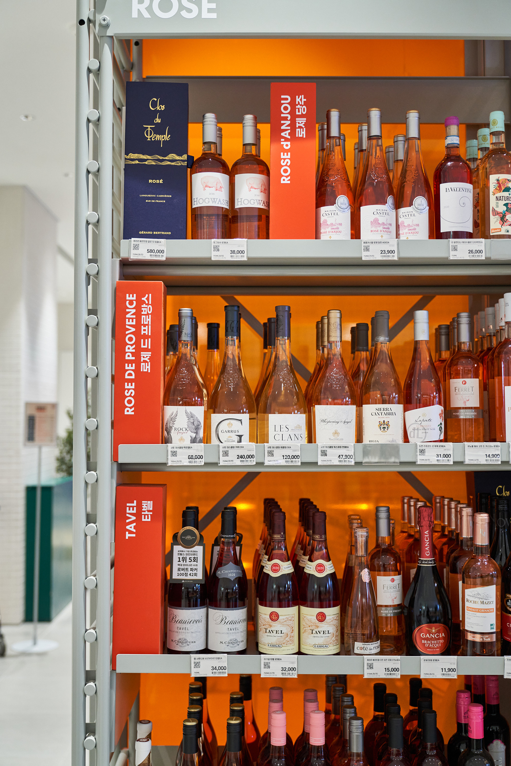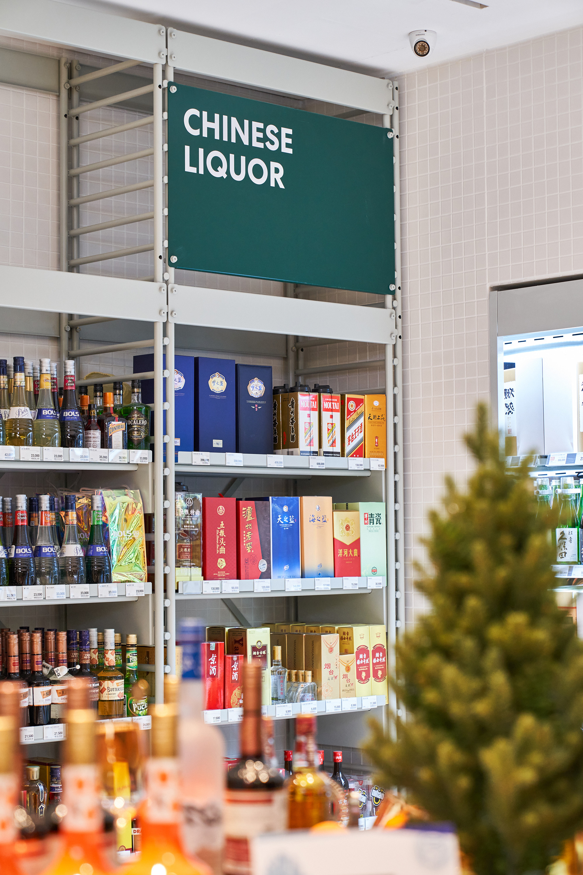 In 2021, Lotte Mart planned a mega store to sell a variety of alcoholic beverages, including wines, whiskies, and sakes, based on its systematic distribution network. Lotte Mart requested a spatial design that facilitates easy product rearrangement while avoiding a warehouse-like ambiance. Considering a 1070㎡ area, the design incorporated a layout tailored to the product flow, considering the number of products and shelves. During the design process, the necessity arose to distinguish between single-sided and double-sided shelving structures. To cater to the mega-mart setting, where many customers navigate with carts in both directions, a significant aisle width close to 2000mm was essential. Consequently, due to limited floor space, shelving had to extend to act as partitions within the store. The Bottle Bunker, envisioned as a store to be expanded nationwide while maintaining a consistent atmosphere, required a cost-effective and easily transformable design. Therefore, a modular system capable of transforming into sectional, double-sided, or table-like configurations was implemented. The single-sided units served the dual role of being attached to walls or standing to partition the store. To ensure stable displays, even with dozens of wine bottles, thick iron structures were designed, incorporating ladder-shaped pillars to connect shelves and create versatile spatial arrangements.