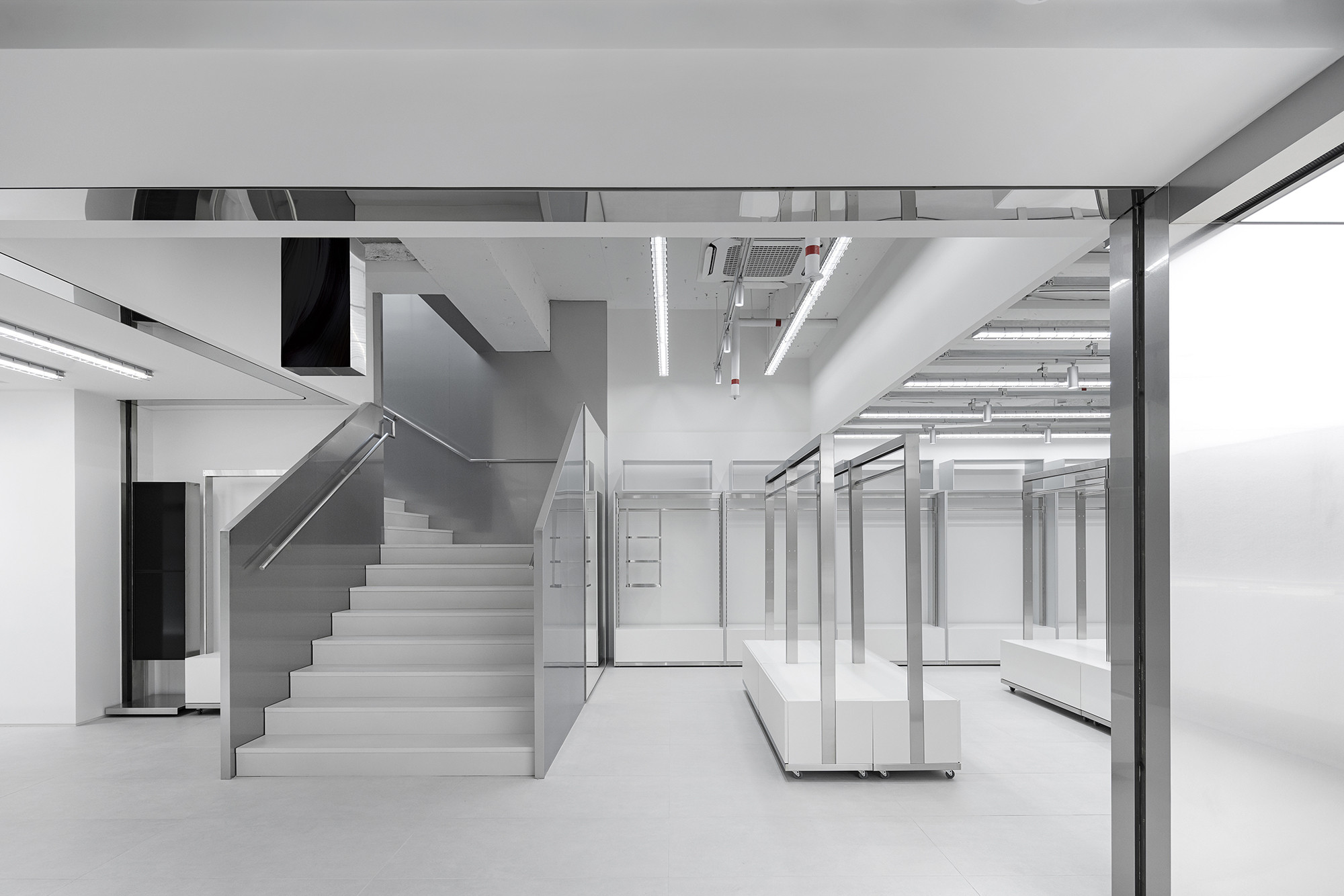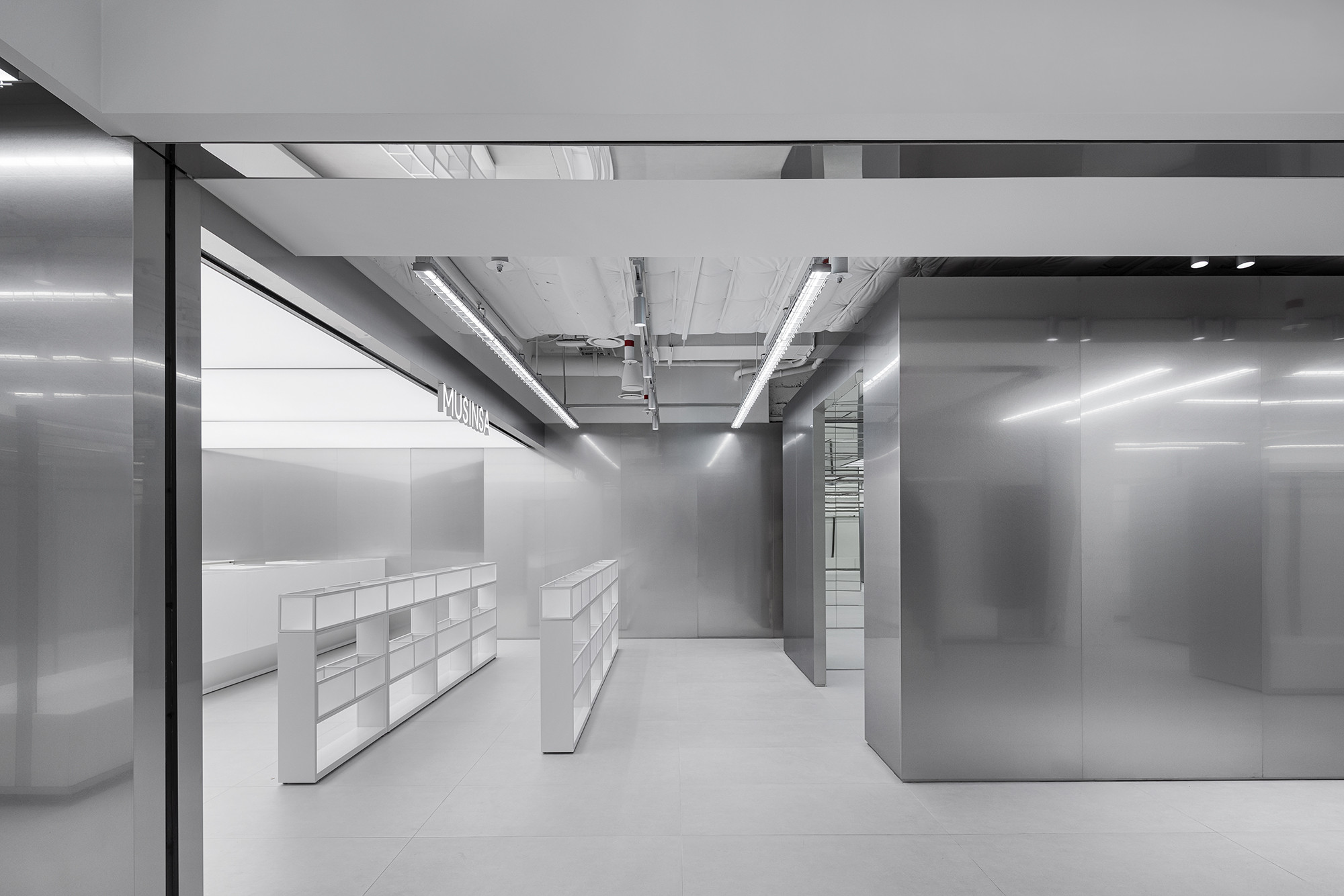 Musinsa Store is a large-scale select shop that brings together a curated range of notable domestic brands in a single space. In designing this environment, we first established several essential conditions that the space must fulfill. Every component needed to be compatible with one another and adaptable to different operational needs, and the overall construction and operation had to remain economically efficient while maintaining a high level of aesthetic refinement.