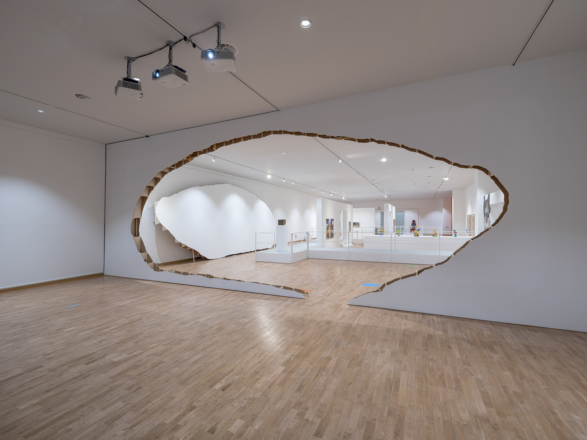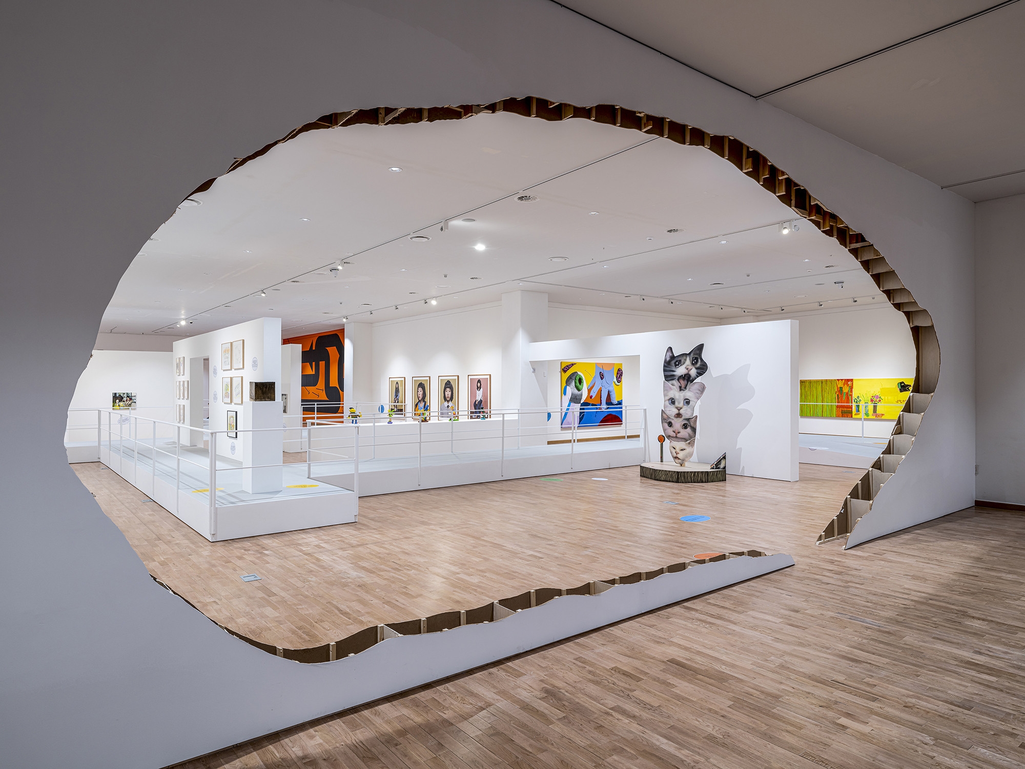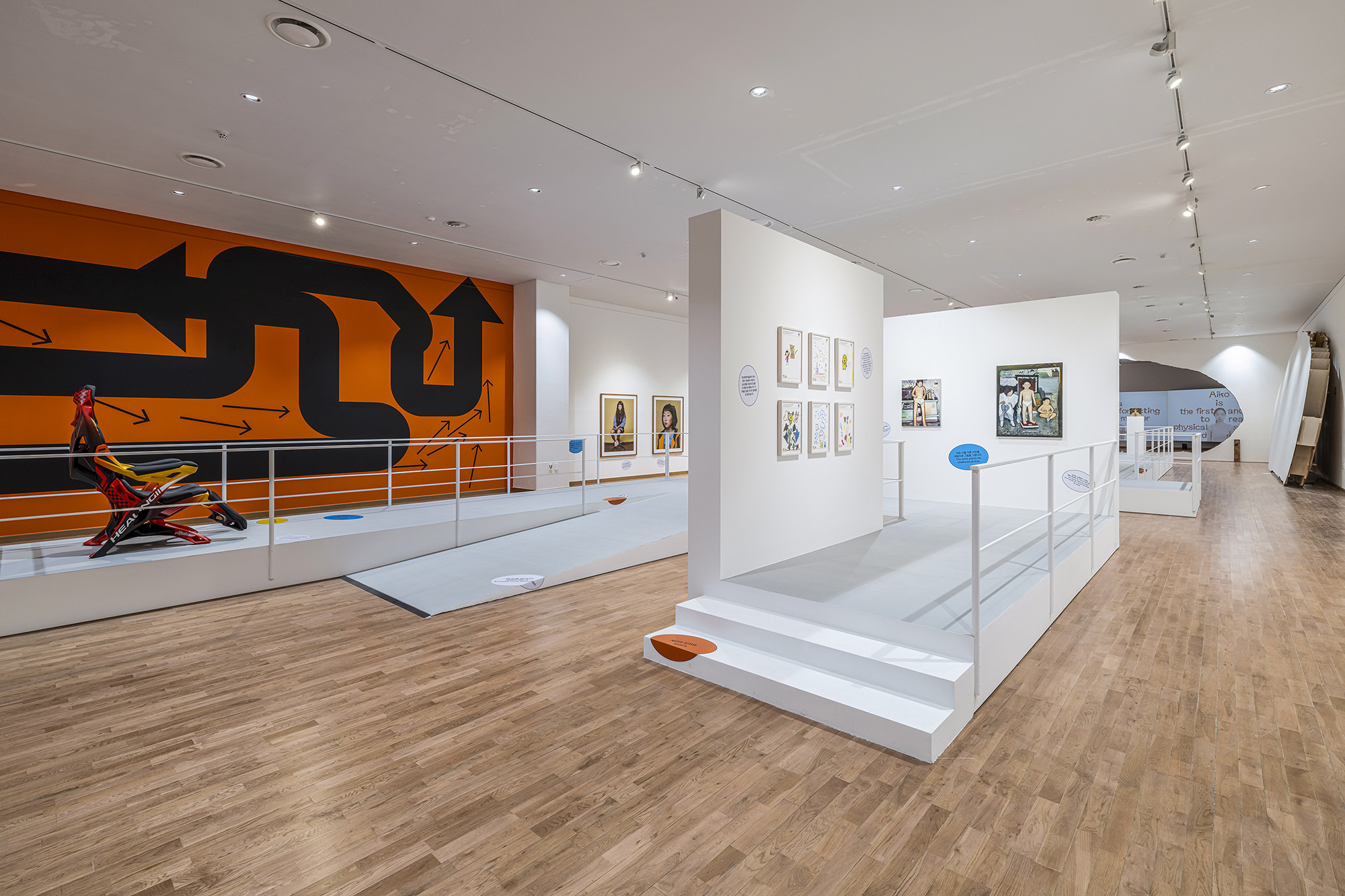 This project is for a children's exhibition at the Busan Museum of Contemporary Art. Instead of erecting walls and hanging paintings, we drew inspiration from elements typically found in playgrounds and reinterpreted them, placing these elements in a linear arrangement.