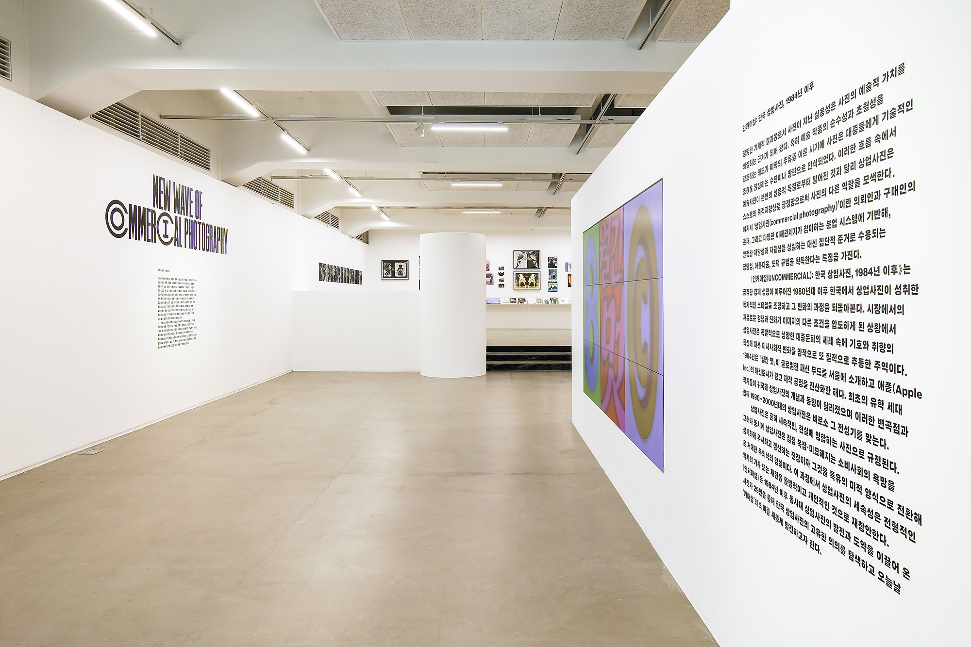 <UNCOMMERCIAL: Korean Commercial Photography, After 1984> is an exhibition that illuminates the distinctive style of commercial photography in Korea since the 1980s, a period marked by rapid economic growth, and contemplates the process of change. We incorporated conspicuous elements, such as round walls, to represent the structure and ambiance of the 80s.