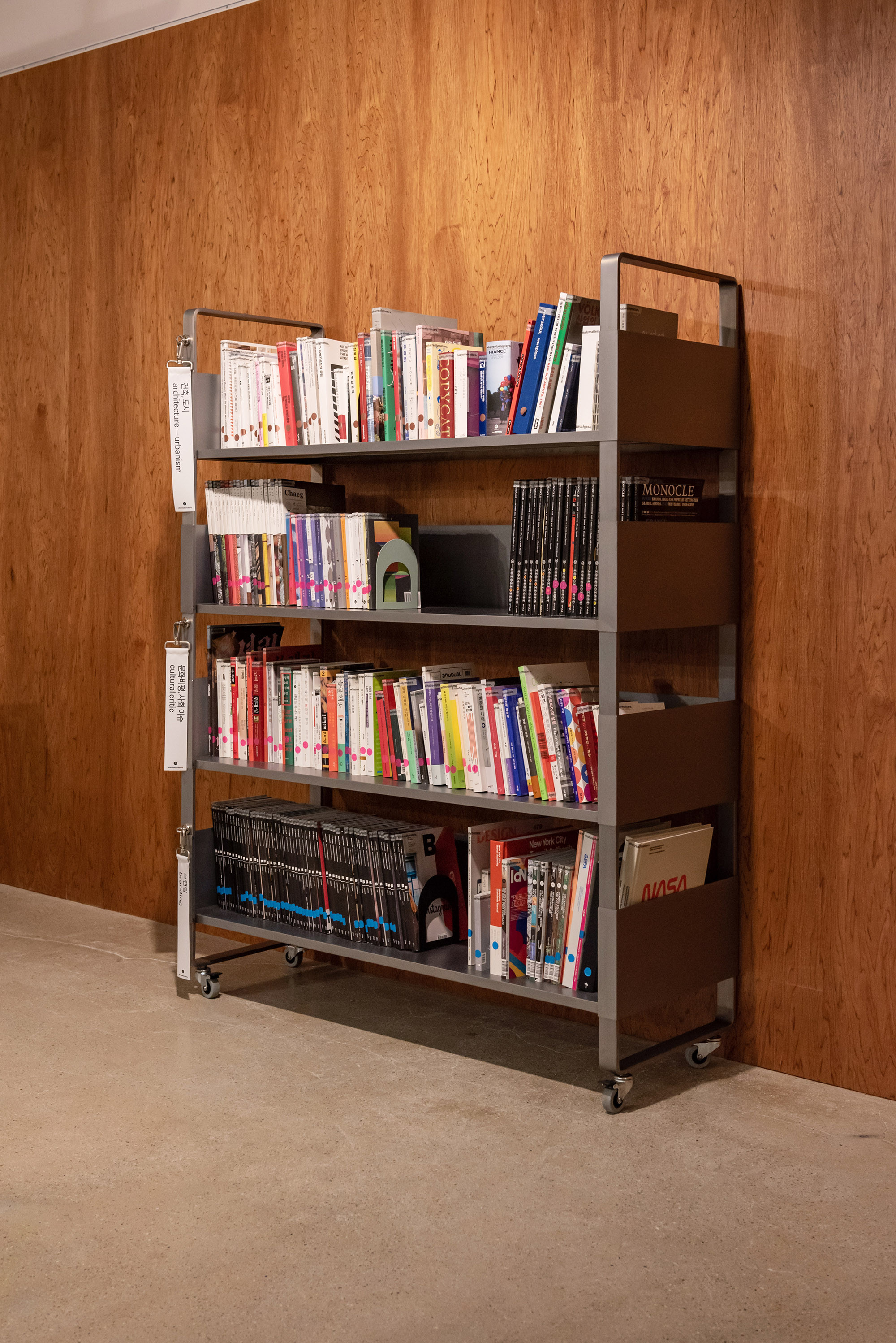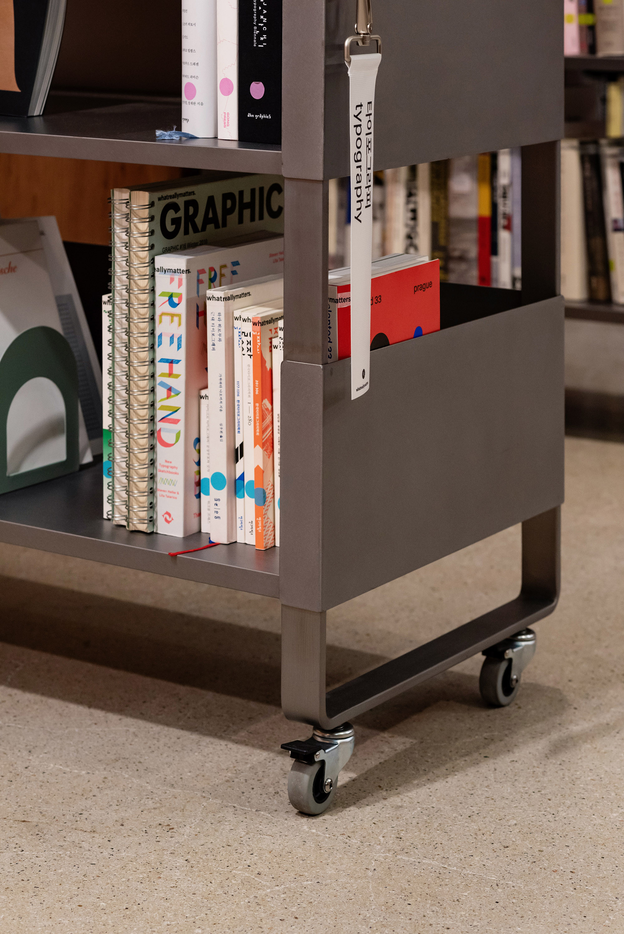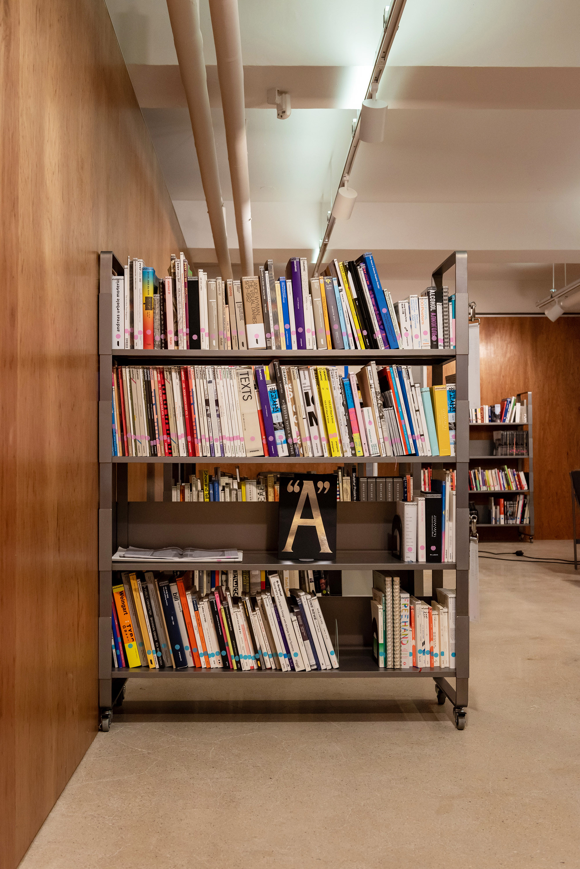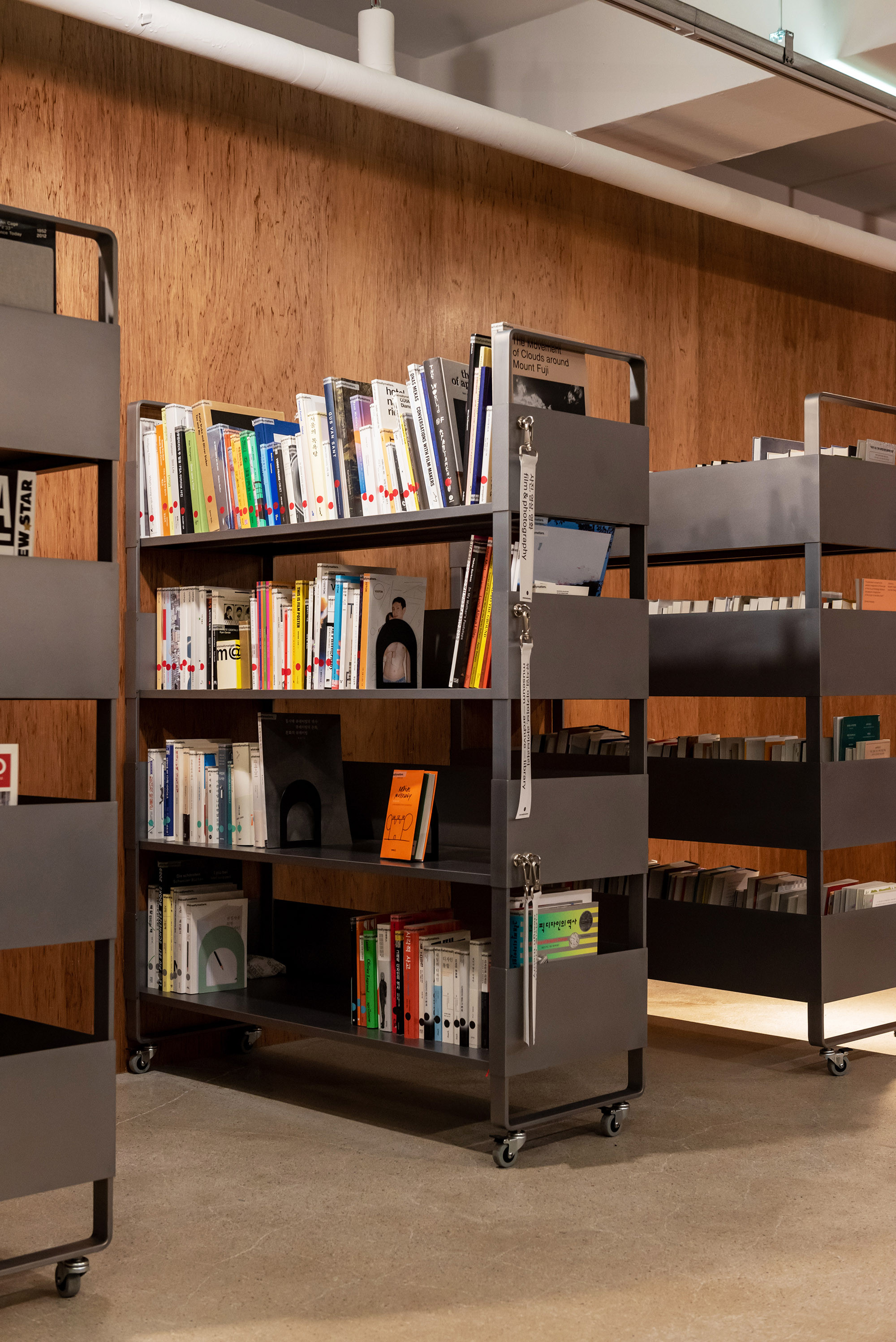 WRM's reference room is a special space that stimulates the creativity of designers, focusing on books in the fields of visual culture, publishing culture, and humanities, including graphic design and photography. Although the space could have been beautifully decorated using inexpensive furniture, WRM specifically commissioned furniture design to ensure that various types of furniture harmoniously coexist with a consistent design language. Requests were made for basic furniture designs such as bookshelves, sofas, armchairs, regular chairs, and large desks with bright lighting to create a small library. This space is designed to be utilized as a small library while also being able to transform into a lecture hall by moving desks and bookshelves. Furthermore, the sofa cushions were meticulously crafted using Tyvek fabric to provide a texture similar to paper, enhancing the experience of feeling like being surrounded by books.